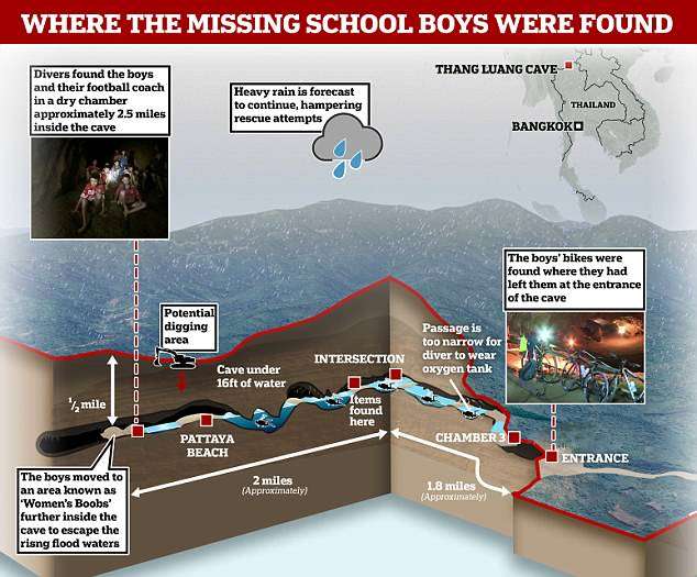Wiilashan iyo macalinkooda oo muddo la waayay ayaa la helay baaskiiladooda afaafka hog hoos u qodan oo biyaha buuruhuna ku dhacaan. Wiilashan iyo macalinkooda ayaa hoy ka dayay meel yara saraysa oo ka mida Hogan hoosta u dheer.