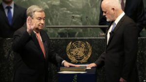 Portugal's António Guterres was sworn in Monday as the ninth U.N. secretary-general. "The United Nations needs to be nimble, efficient...