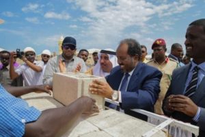 President Hassan Shaikh Mahmoud of the Federal Republic of Somalia, and Mohammad Ahmad Al Othman, UAE Ambassador to Somalia, laid...