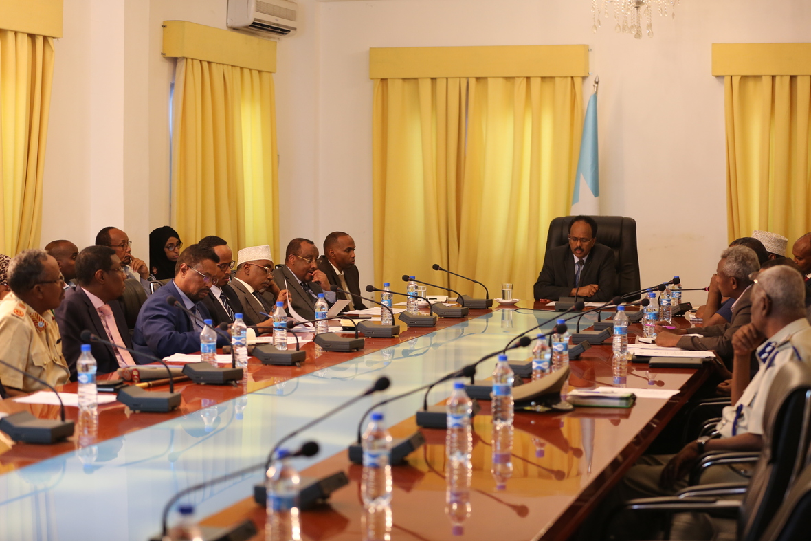 Farmaajo ayaa furey shirka loogu magac daray amniga qaranka. Taliyeyaasha Ciidamada Qalabka Sida ee qaybta ka ahaa shirkan ayaa iyaguna madaxda qaranka u soo bandhigay halka ay marayaan qorshayaasha dagaalka ka dhanka ah argagixisada iyo xogta ku saabsan howlgallada socda ee dalka lagaga sifaynayo kooxda dhiigeena xalaashatay.