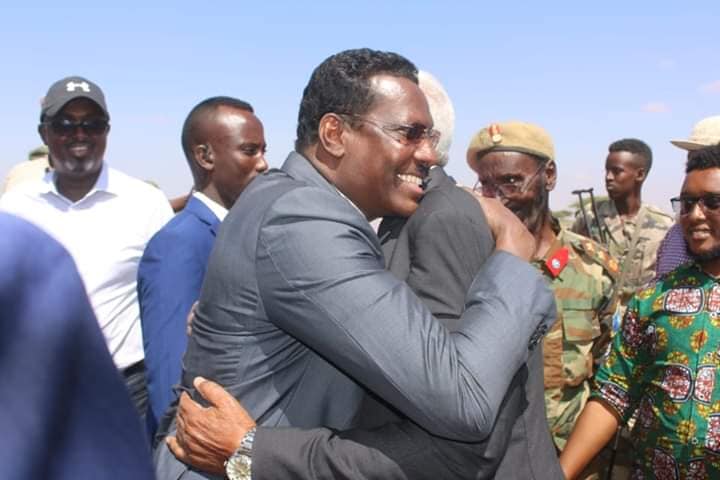 Madaxa Galmudug oo uu weheliyo ku xigeenkiisa iyo masuuliyiin kale ayaa duleedka deegaanka Godinlabe ee gobolka Galgaduud ku soo dhaweeyay horjoogihii hore ee Galmudug Axmed Ducaale Geelle Xaaf.