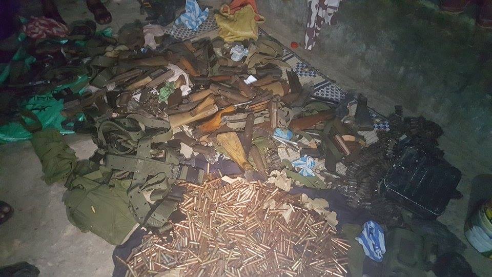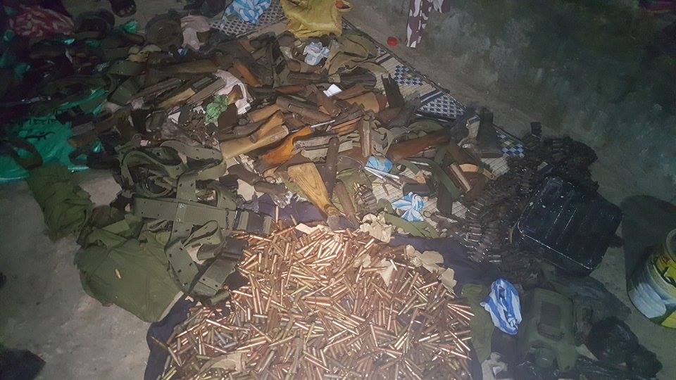 Hubkan ayaa isugu jira qoryaha Ak-47, rasaas, Bambooyin iyo sidoo kale qasnado ay rasaas ka buuxdo waxaana ku socda baaritaan.
