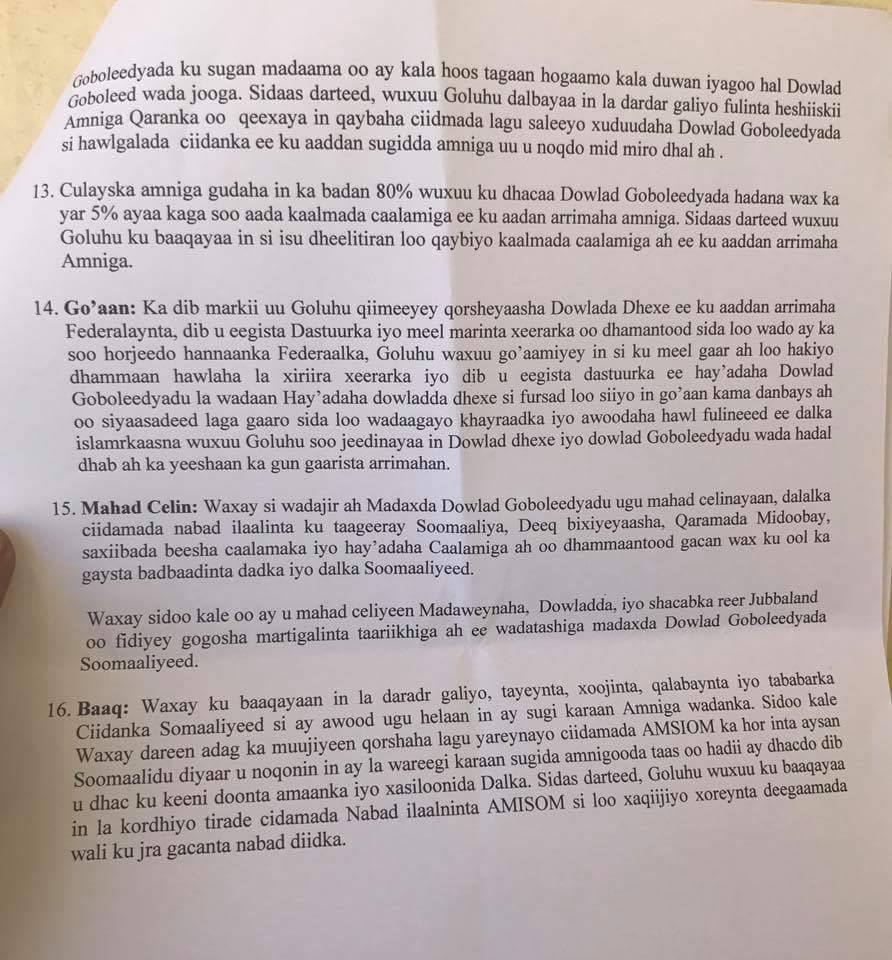 Hoos ka akhri warmurtiyeedka oo ay ku heshiiyeen in joojiyaan dib u eegista dastuurka.