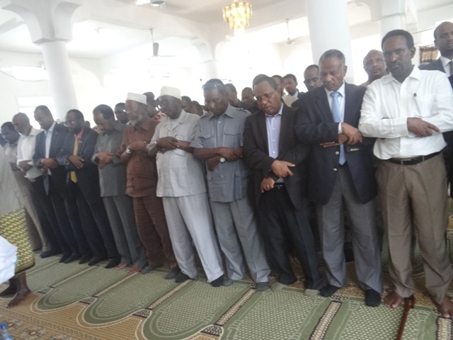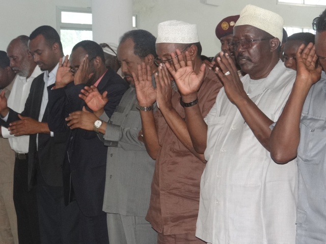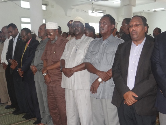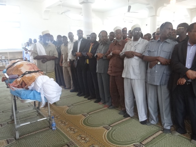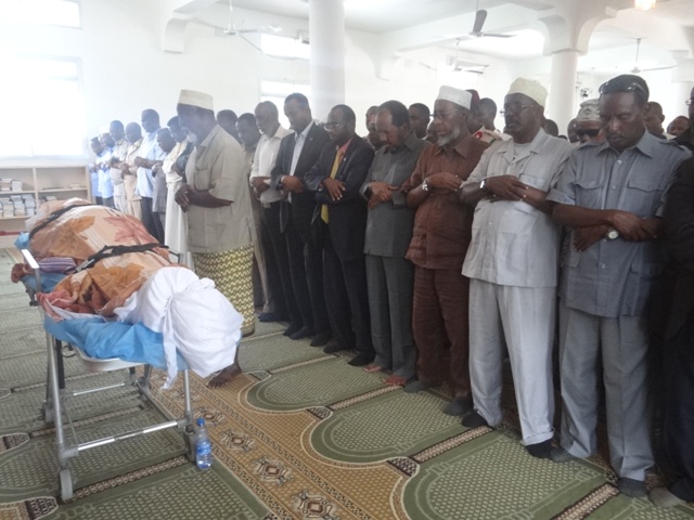 Madaxweynaha Soomaaliya Xasan Sheekh Maxamuud, Wasiiro ka tirsan Xukuumadda, Xildhibaano iyo saraakiil ayaa maanta ka qeyb galay salaada janaasada ee Meydka Alle ha u naxariistee Abaanduulihii hore ee Ciidamada xoogga dalka Jen. C/kariin Yuusuf Aadan Dhega-badan oo shalay ku geeriyooday weerarkii argagixisada ee Hotel Saxafi.