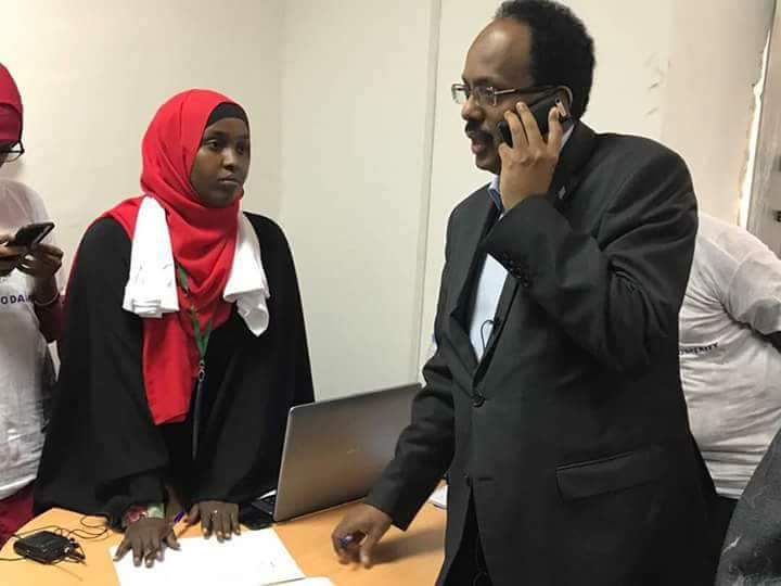 Xaruntan ayaa waxa ka hawlgala dhalinyaro si tabaruca ugu adeegaya walaalahooda argagixisada Carabtu maalgeliso ku xasuuqdey Muqdisho, weyna ku farxeen inay arkaan madaxweynaha.