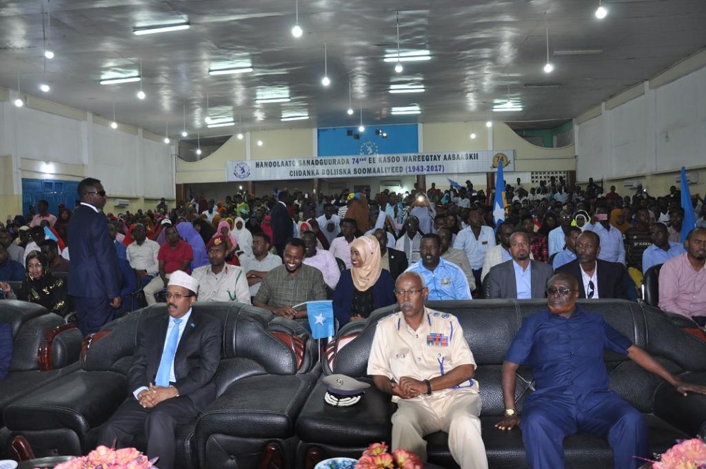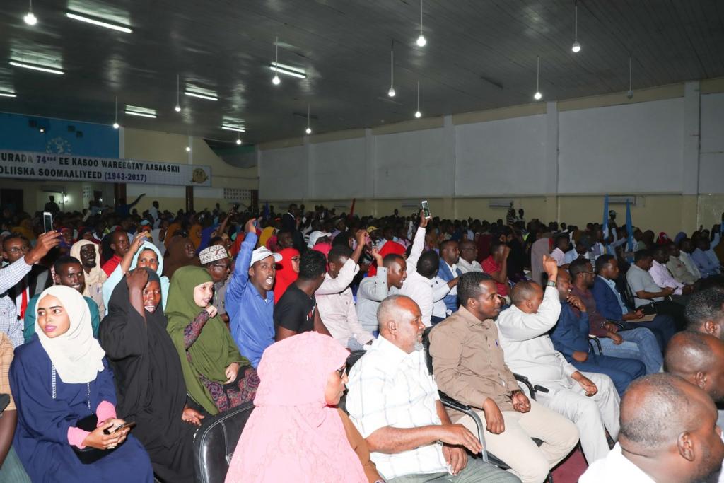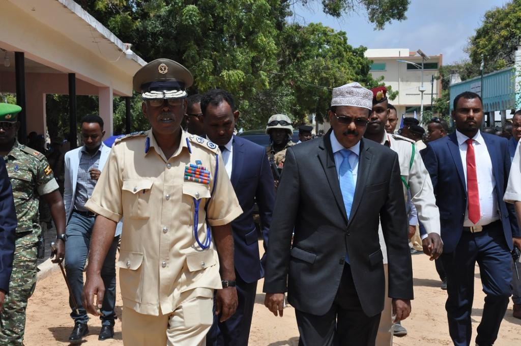 Farmaajo oo ka hadlayey Xaflad loogu magac daray Kulanka Xoogagga Wadaniyiinta Soomaaliyeed, ayaa ugu hambalyeeyey Halka darajo ee uu dalacay Taliyaha Ciidanka Booliska Soomaaliyeed S/gaas Bashiir Cabdi Maxamed (Ameeriko).