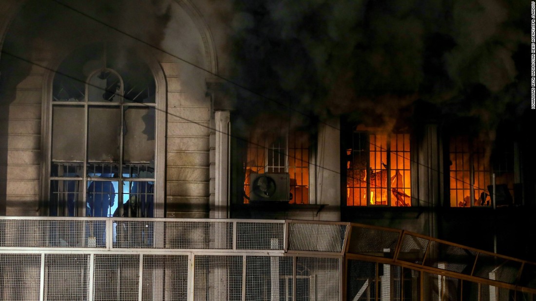 Dad aad u cadhaysan kana xanaaqay firqada Sucuudiga ee Salafi iyo xasuuqii uu u gaystey dad waxay aaminsan yihiin loo diley oo uu ku jiro sheekh caana ayaa gubey safaaradii Sucuudigu ku lahaa Tehraan. Dad ayaa ku qaylinaya ha dhaco qoyska Saud iyo argagixisada uu aduunka ku faafinayo.