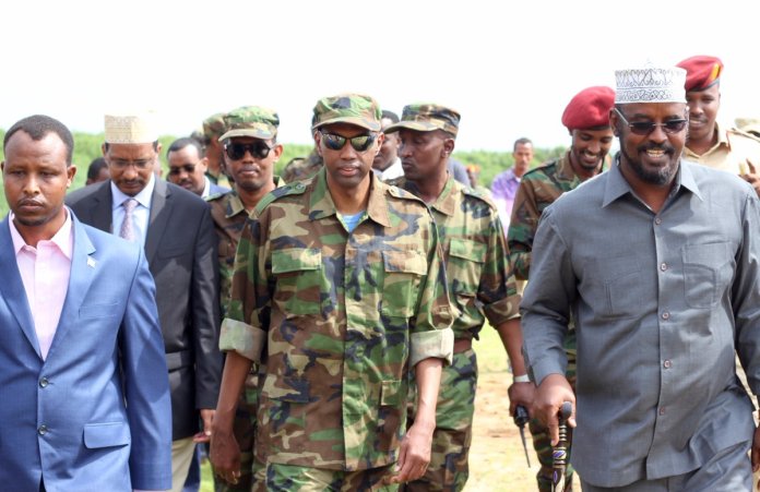 Xasan Cali Kheyre ayaa ku lebisnaa dareysa ciidamada milateriga xilliga uu booqashada Goobweyn ku joogay, isagoo sidoo kale booqday xarumo kale.