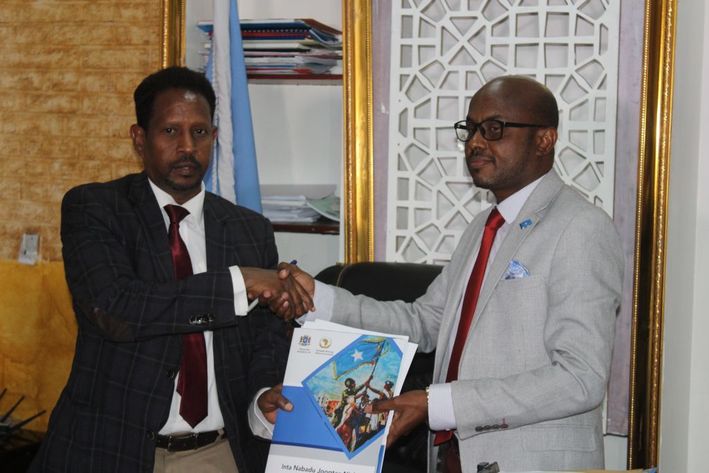 Wasiirka ayaa xilka u tiriyay Mudane Cabdiraxmaan Iidaan Yoonis oo ah Wasiir ku-xigeenka Wasaaradda Warfaafinta kadib munaasabad kooban oo lagu qabtay xarunta Wasaaradda Warfaafinta.
