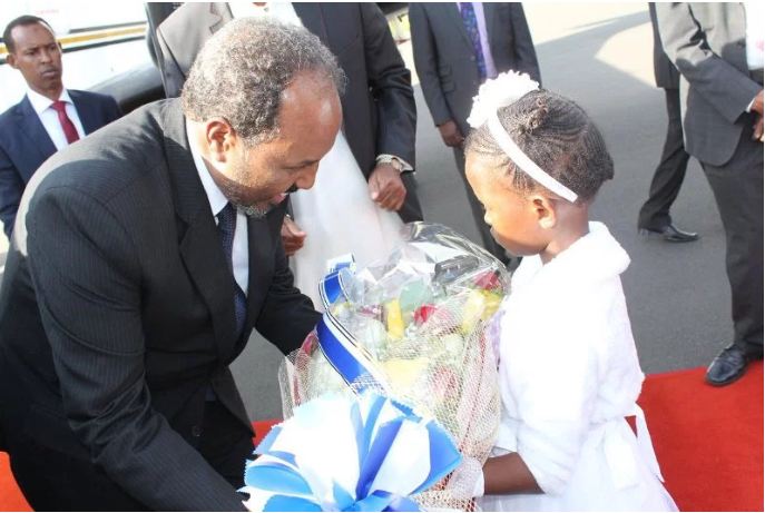 Madaxweynaha Somaliya oo KIiniya ku sugan ayaa maqaam aad u hooseeya lagu soo dhaweeyay. Xasan Sheekh ayaa Kiiniya u tagey booqasho rasmi ah ee aan ahayn mid shaqsi. Garoonka Jomo Kenyatta waxaa uga hor yimid oo ku soo dhoweeyay guddoomiyaha Aqlabiyadda Baarlamaanka Kiiniya Aadan Barre Ducaale, mana jirin cid ka tirsan wasiirada Kiiniya, madaxweyne ku xigeen iyo madaxweyne soo dhoweeyay Madaxweynaha Soomaaliya Xasan Sheekh Maxamuud.
